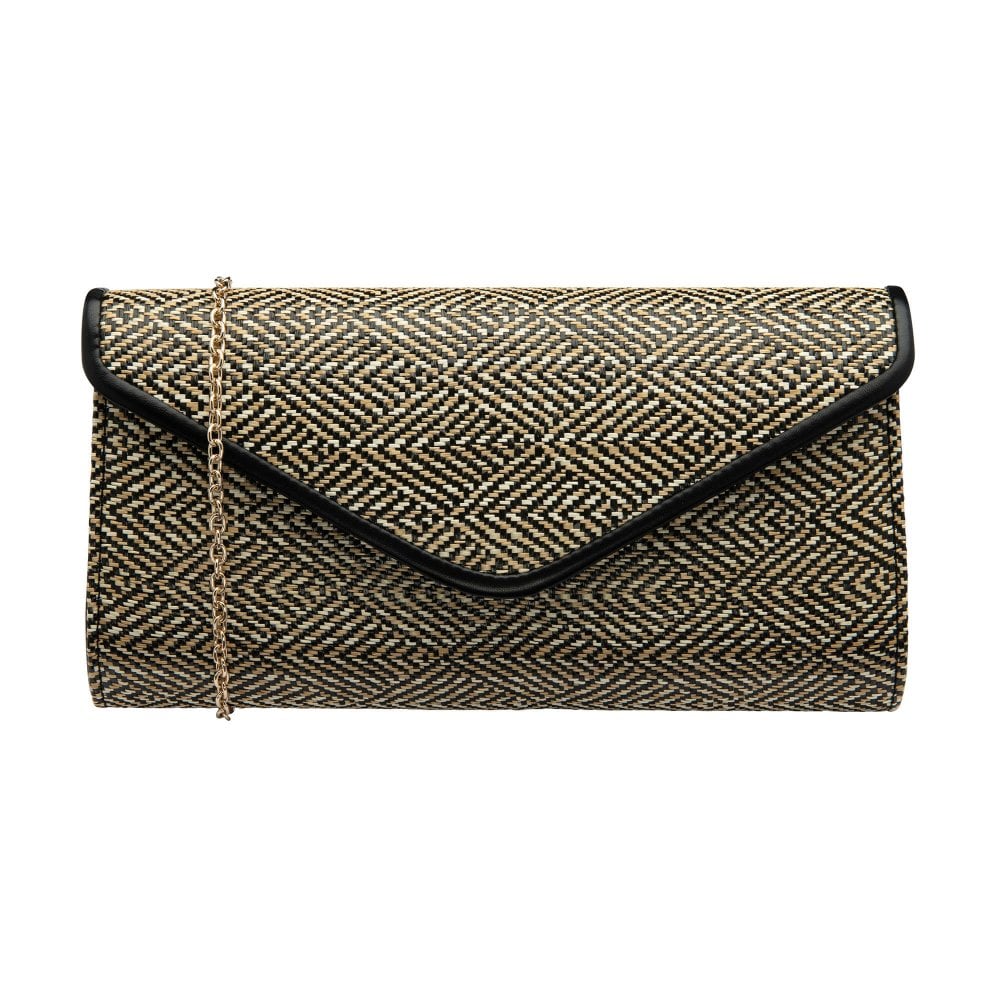 Add effortless elegance to your looks with the Lotus Chariot clutch bag, a refined statement piece with timeless appeal. Designed with a textured woven finish, this women’s clutch blends classic craftsmanship with a modern, fashion-forward edge. Finished with a gold-tone chain strap, Chariot offers versatile styling, wear it over the shoulder for hands-free ease or carry it as a chic clutch for evening occasions. The envelope-style silhouette is framed with sleek black trim, creating a polished contrast that elevates both daytime and after-dark looks. Sophisticated yet versatile, the Lotus Chariot clutch bag coordinates seamlessly with the Lotus Solange court shoe, making this duo perfect for pairing with occasion wear, evening dresses or tailored separates, making it the perfect finishing touch for weddings, events and special nights out.