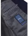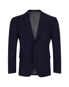 Navy tapered fit polyviscose stretch jacket with stripe.