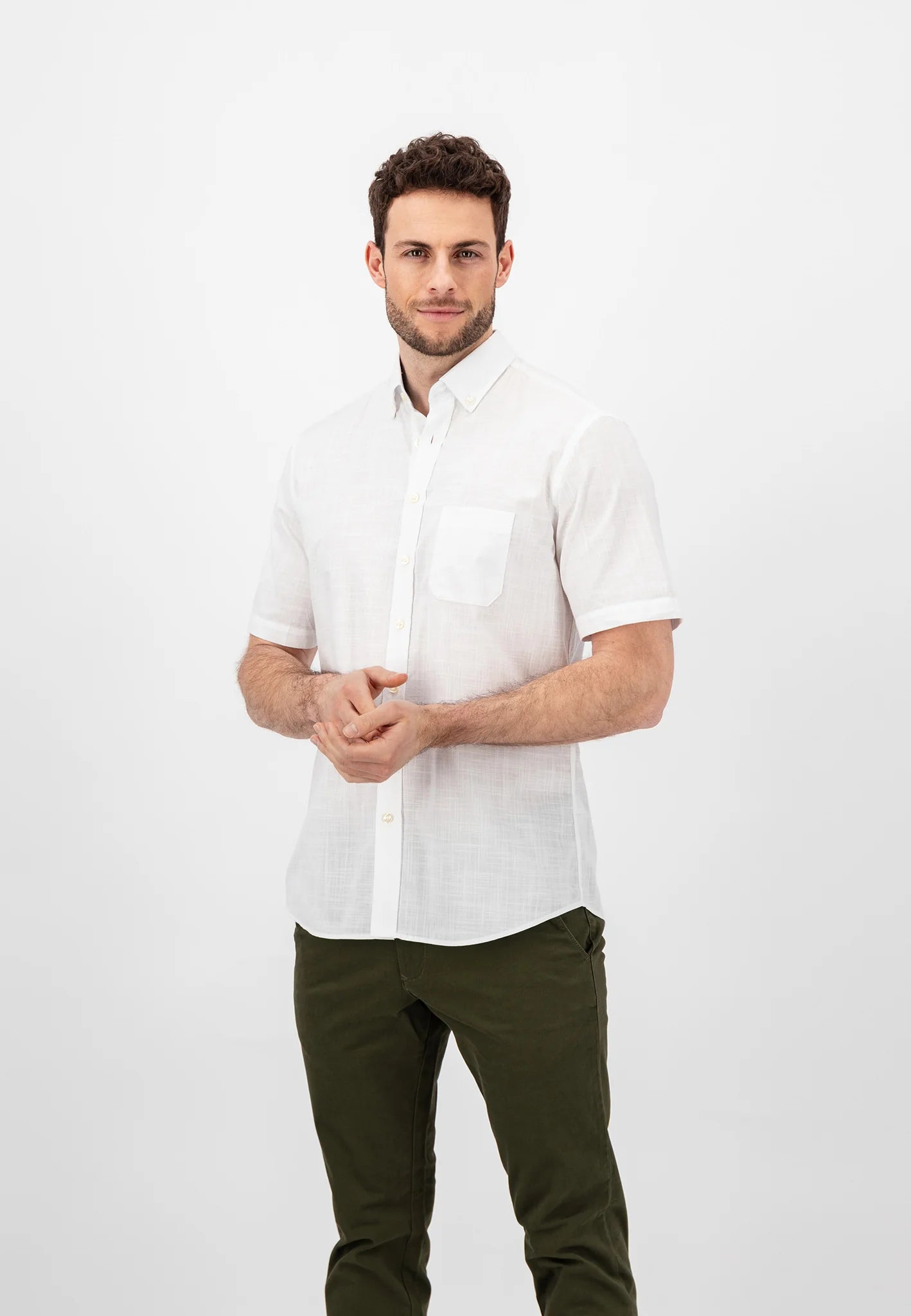 FYNCH HATTON White Slub Cotton Short Sleeve Shirt