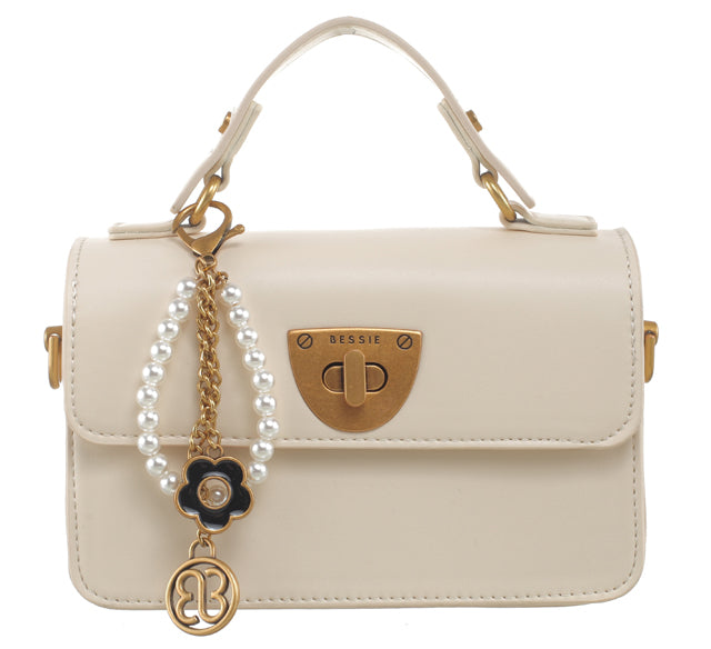 Features: Crossbody Bag | Fully Lined Interior | Zip Closure | Top Handle | Detachable Long Strap | Charm | Twist Lock | Flap Over
