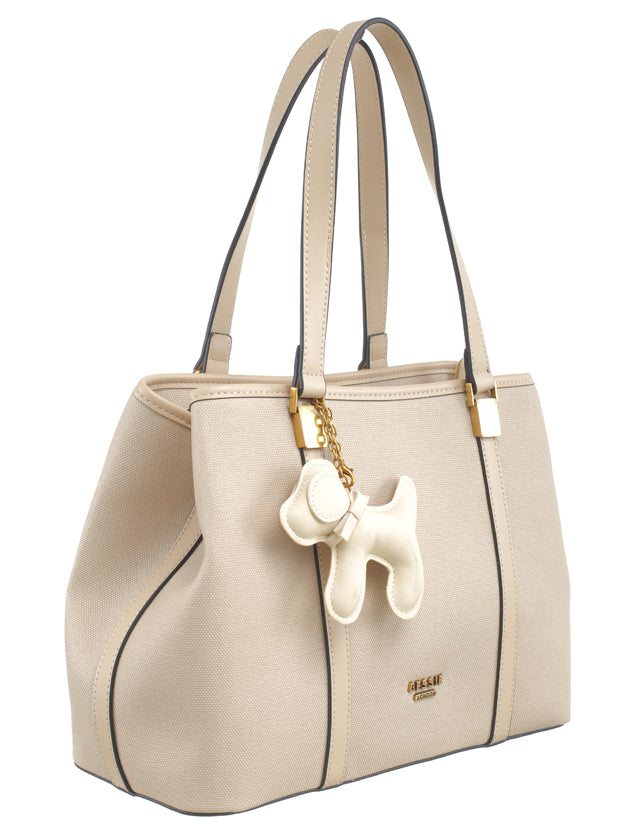 BESSIE LONDON Beige Two Tone Charm Tote Bag
