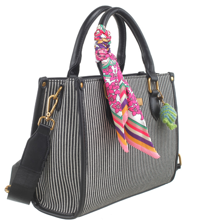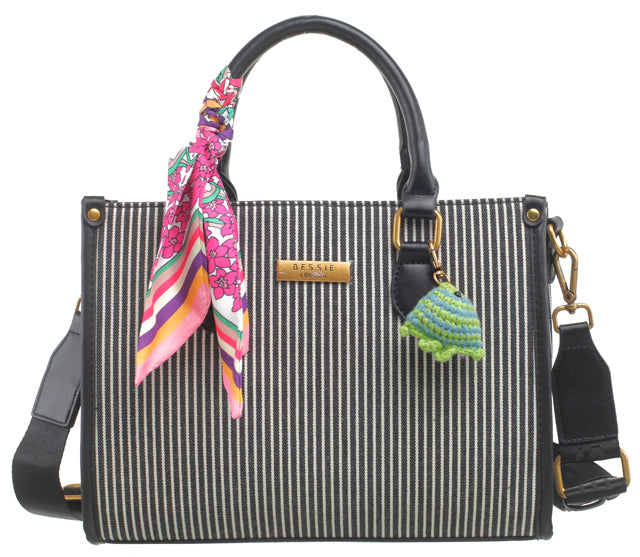 BESSIE LONDON Black Striped Tote Bag