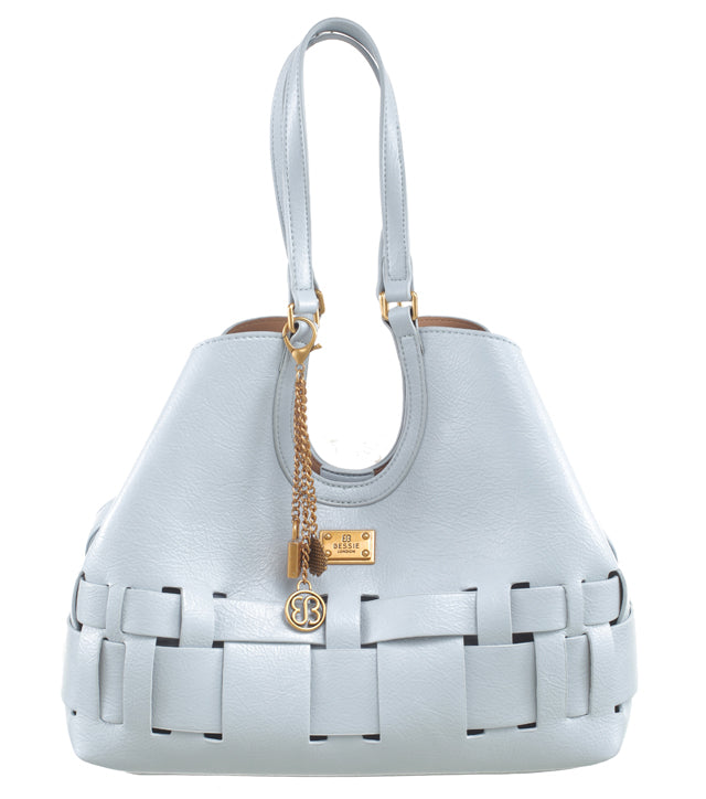 Features: Tote Bag | Shoulder Bag | Weave | Charm | Pouch | Fully Lined Interior | Zip Closure | Double Shoulder Straps