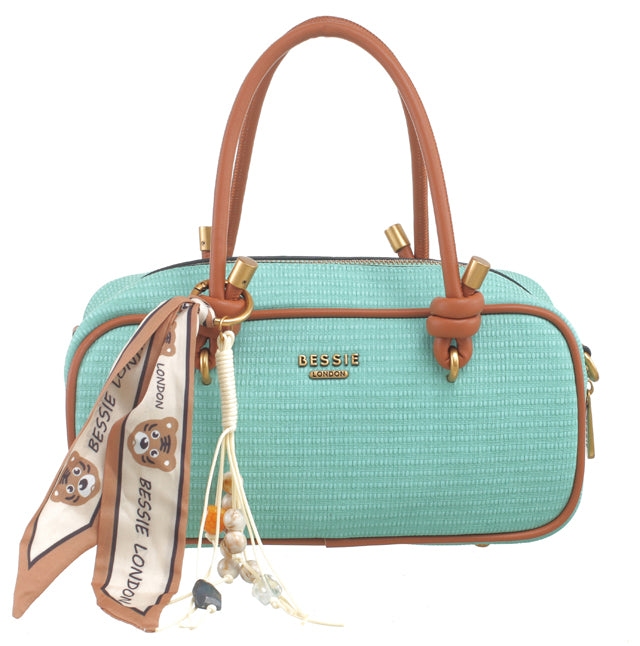 BESSIE LONDON Green Textured Knot Bowling Bag