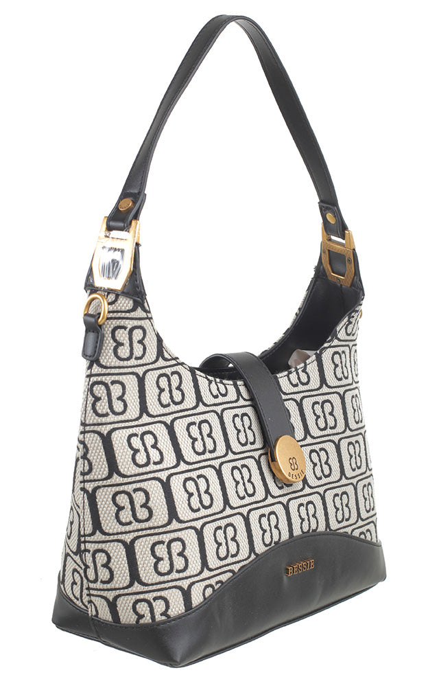 BESSIE LONDON Grey Signature Monogram Shoulder Bag
