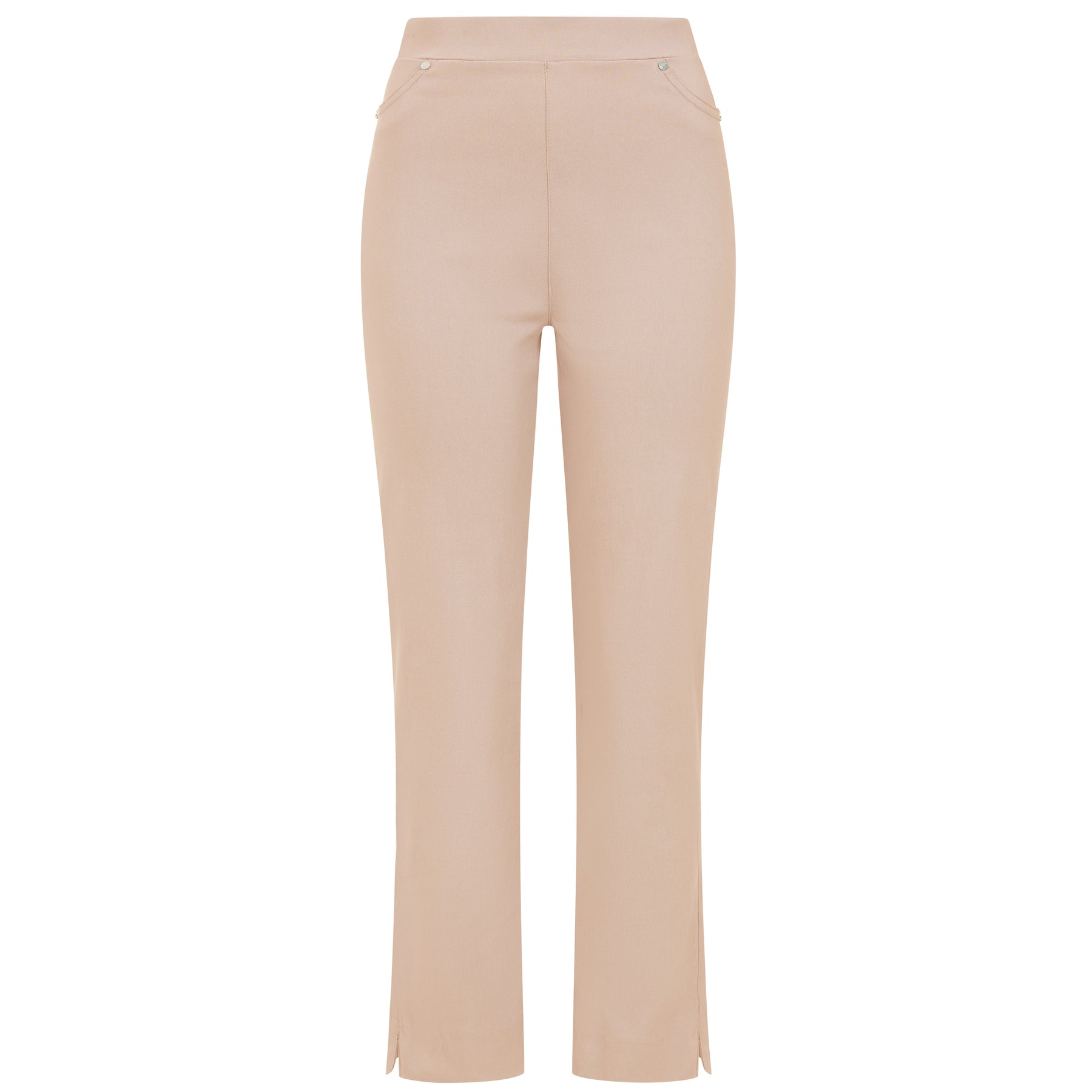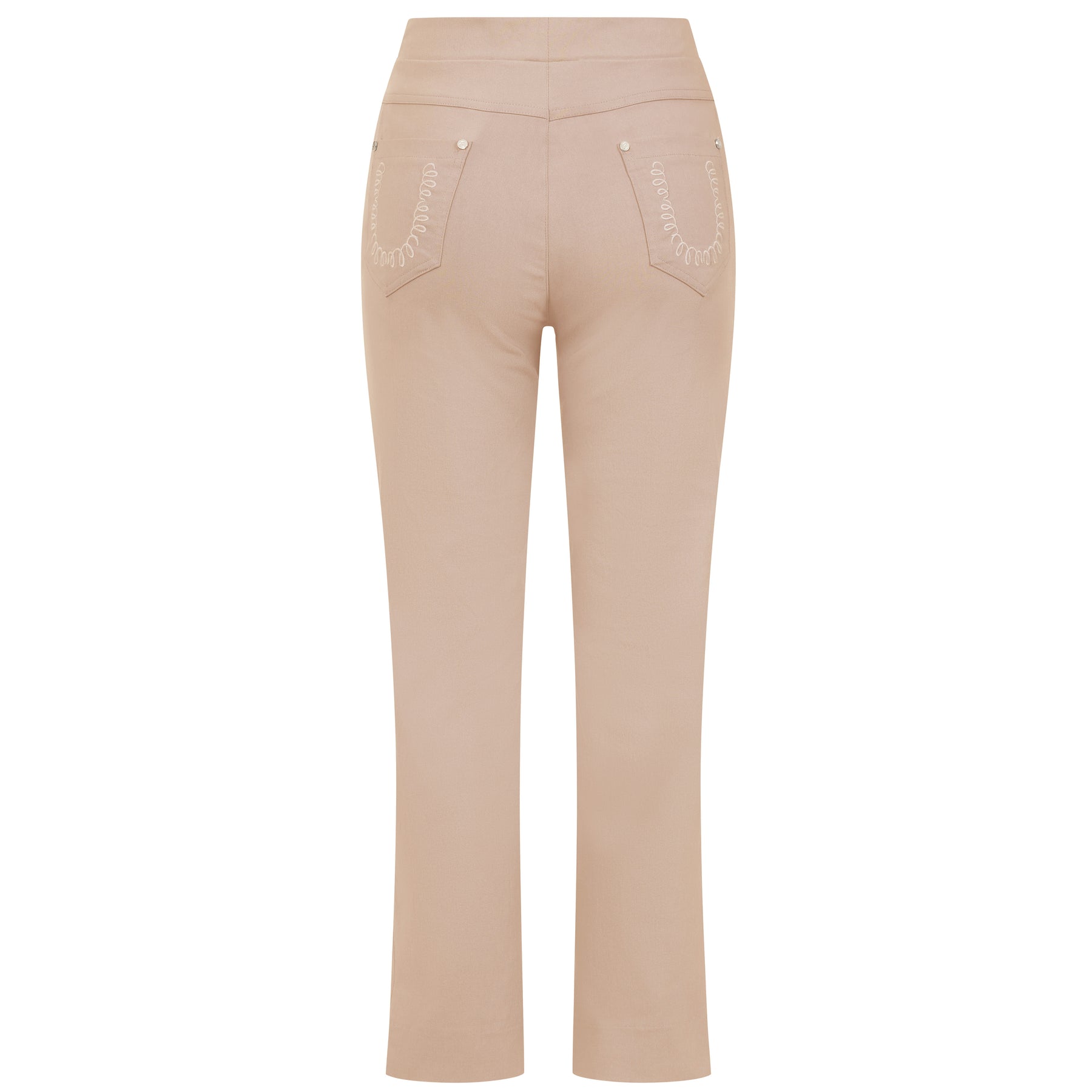 These trousers feature an easy pull on, fully elasticated waistband that lies flat under tops. They are a flattering cut and provide a sleek fit. Two mock front pockets and two functioning back pockets which also feature stitched detailing.