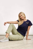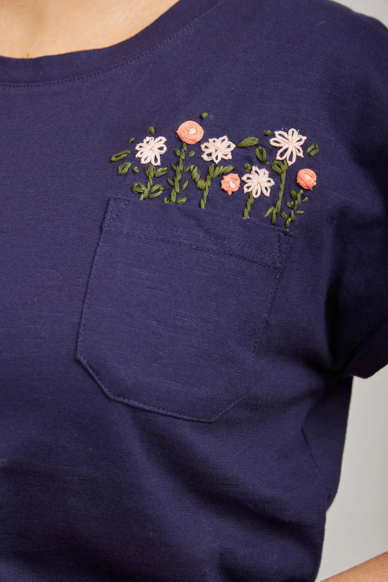 MUDFLOWER Navy Floral Embroidered Pocket Tee 454