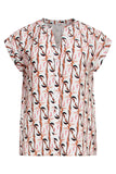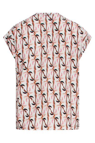 This off-white Moroccan top from Smashed Lemon is a must-have for every summer wardrobe. The playful repeated palm print is executed in warm shades of pink and brown, giving the top a tropical and elegant look. Thanks to the loose fit, the top feels wonderfully airy, ideal for warm days. The top is designed with a refined V-shaped panel neckline that creates a flattering look. The short sleeves with a playful foldover provide a casual, yet stylish touch. Made from 80% rayon, the fabric feels silky soft on the skin and offers optimal wearing comfort.