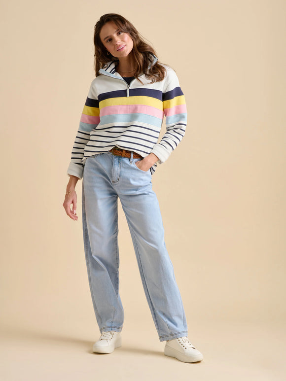MUDFLOWER Blue Striped Cowl Neck Jumper