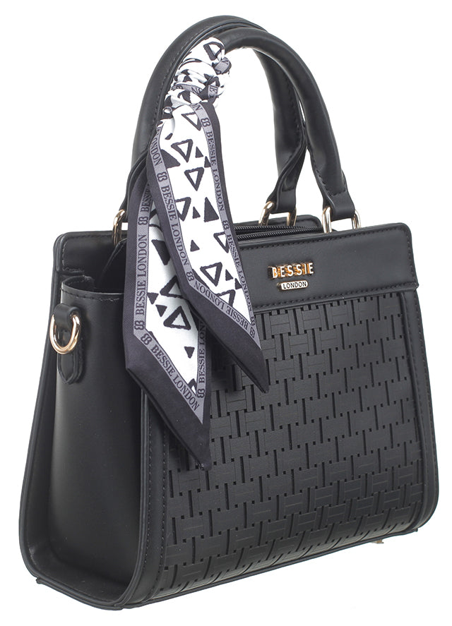 Features: Tote Bag | Bakset-weave | Scarf | Fully Lined Interior | Detachable Long Strap | Zip Closure | Double Handle