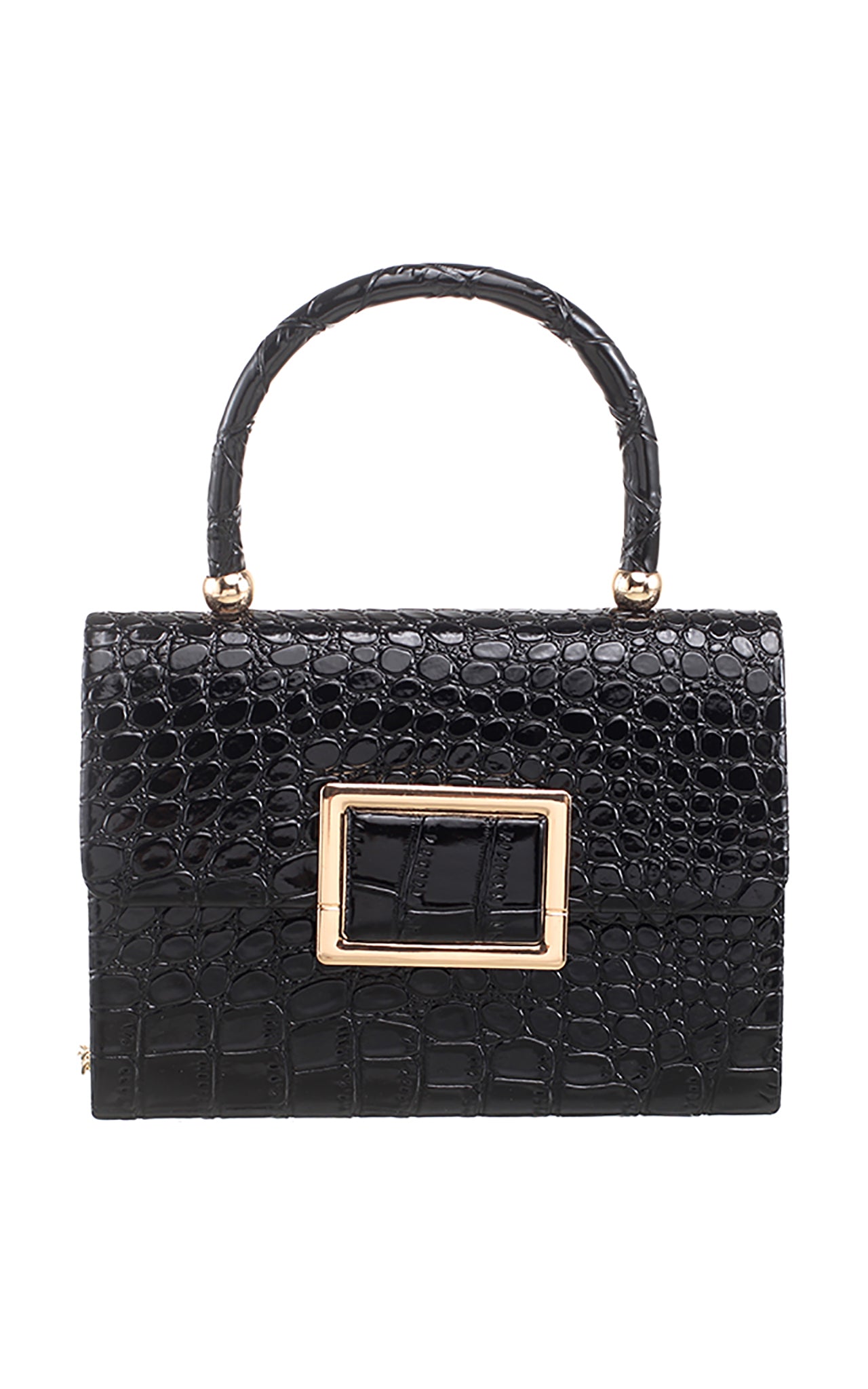 Features: Cross Body Bag  |  Fully Lined Interior  |  Top Handle  |  Flap Over  |  Croc Print  |  Ring Chain