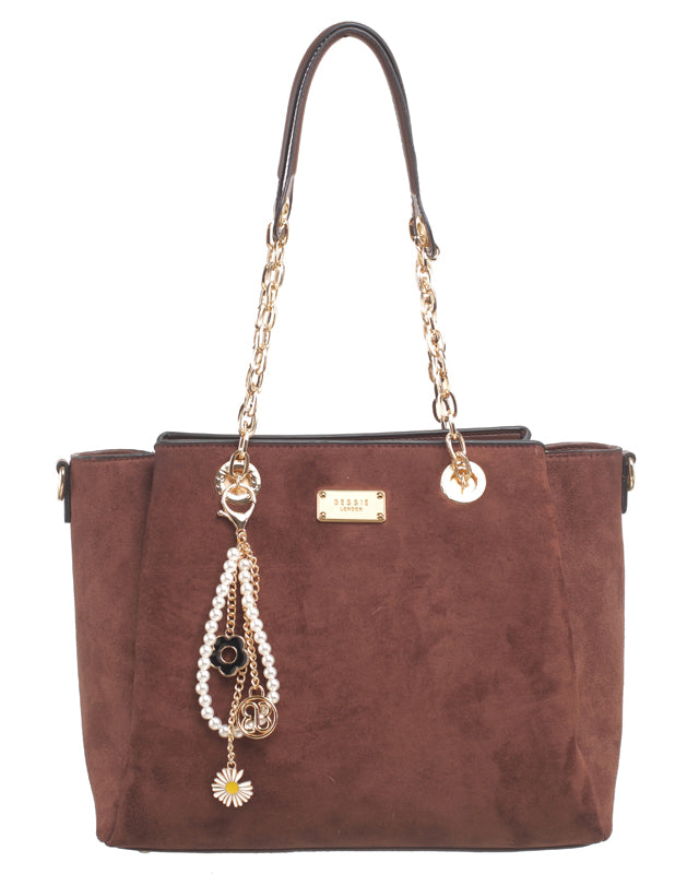 BESSIE LONDON Coffee Glamour Chain Shopper Bag