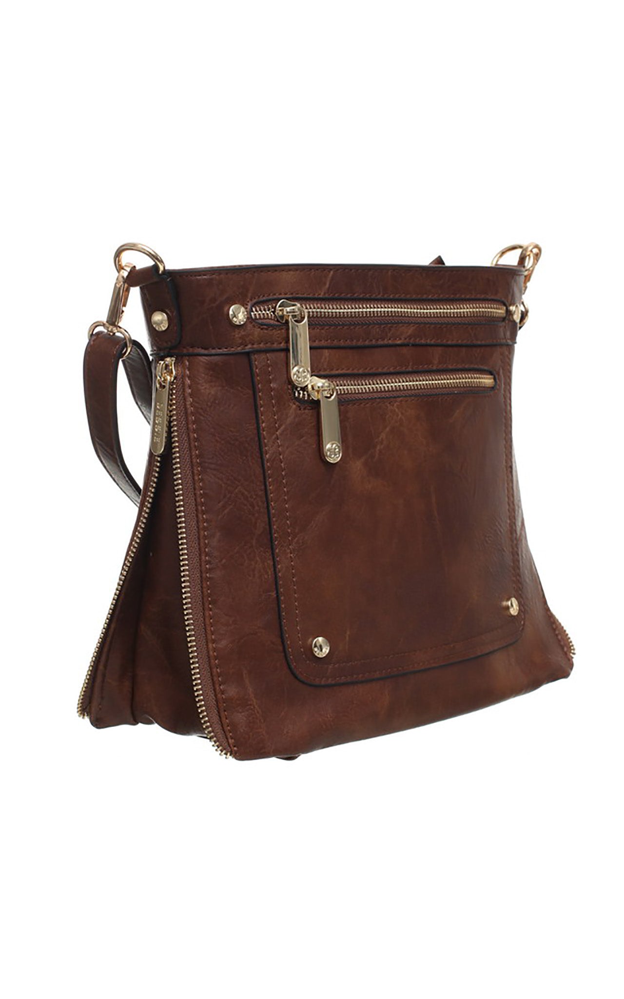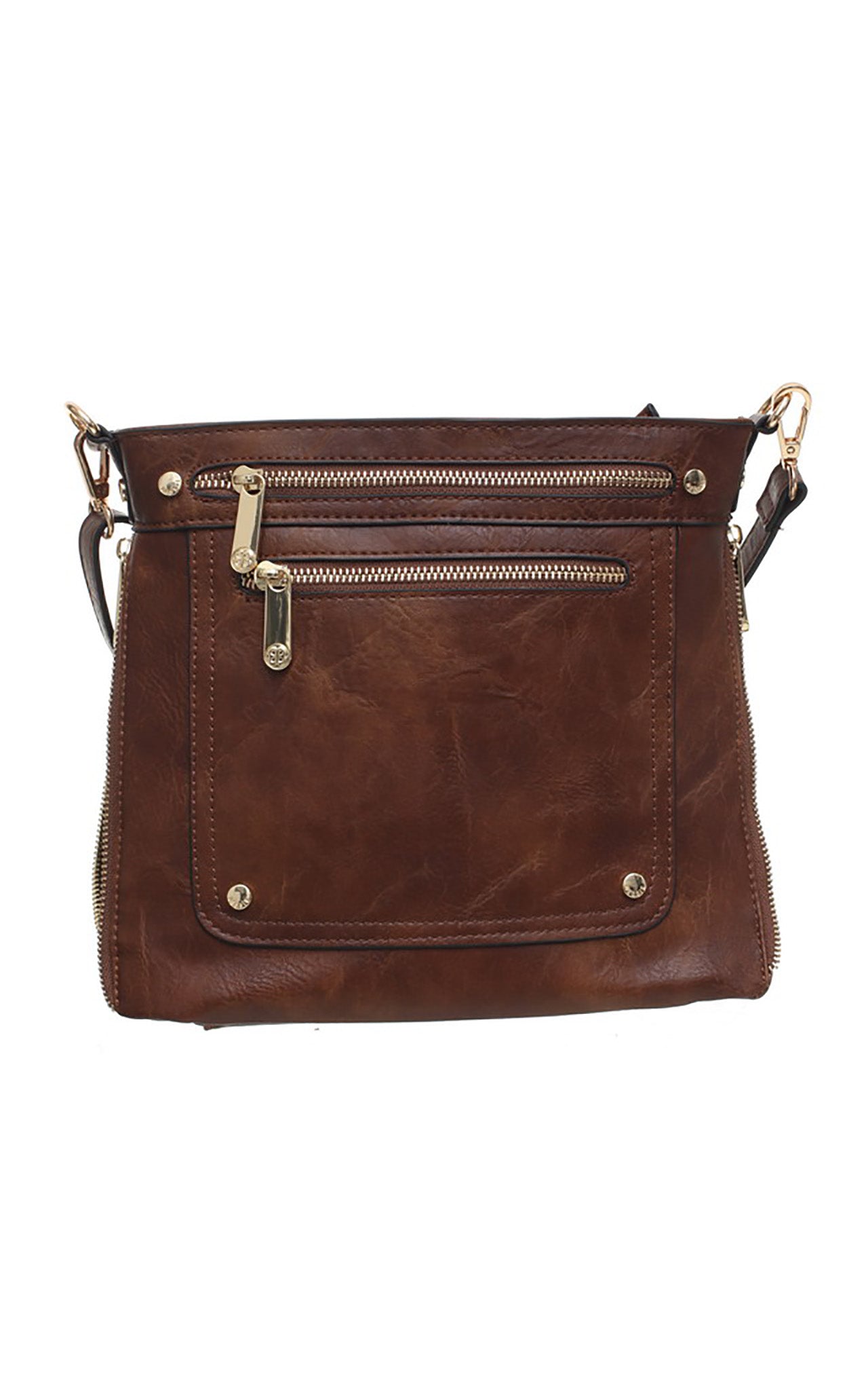 BESSIE LONDON Coffee Zip Pocket Crossbody Bag