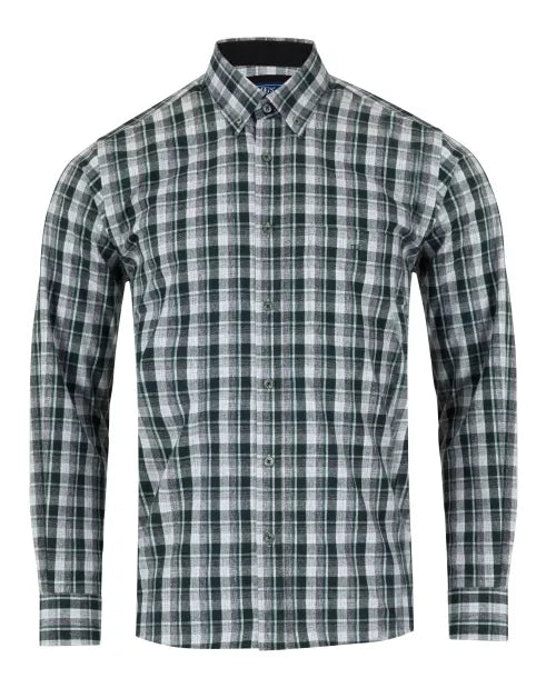 Green Checkregular fit checked cotton-blend long sleeve shirt and giovanni collar