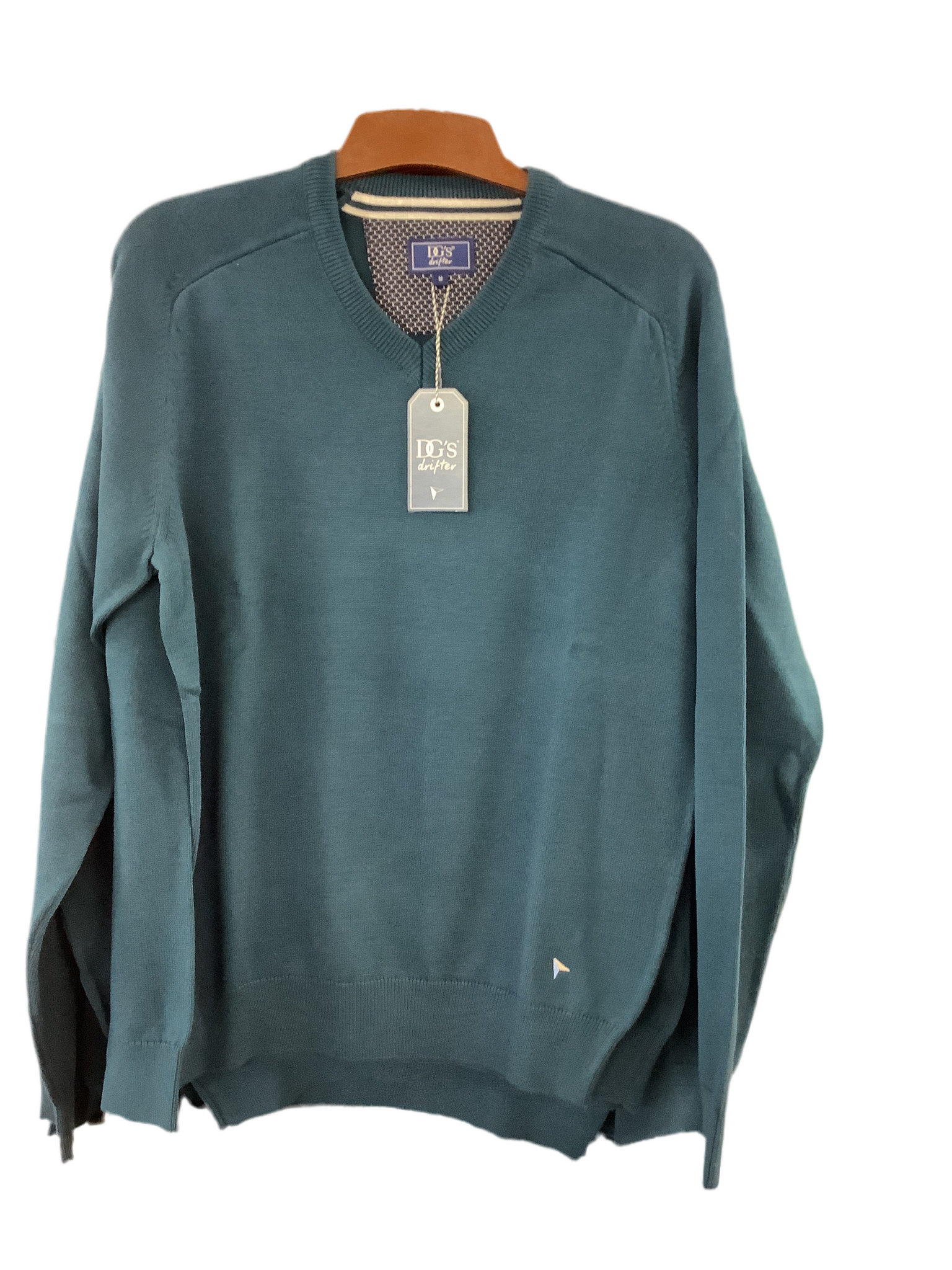 DRIFTER Petrol Blue Long Sleeve V-Neck Sweater 55599/268