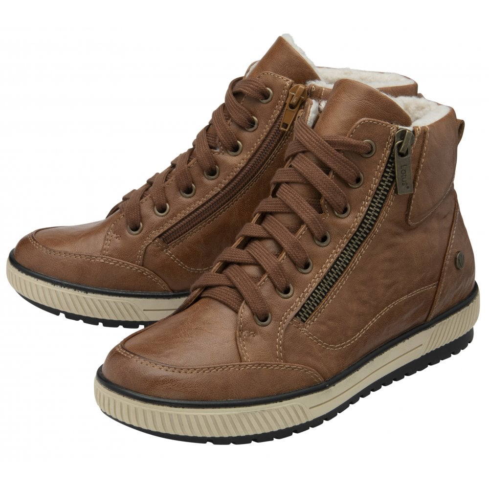 Everyday adventures are calling out for the Lotus Bellatrix lace-up ankle boots.  This casual silhouette has an athleisure vibe as it sits on a trainer inspired outsole.  Crafted from faux leather and boasting a luxuriously soft faux shearling lining and a practical zip so that you can slip them on and off without having to adjust the laces.  This women’s tan boot fuses style and functionality in one irresistible design.