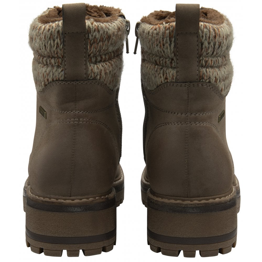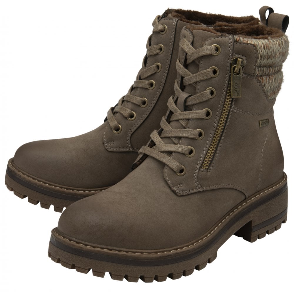 If you want to look great on dressed-down days, no matter what the weather does, look no further than the Lotus Stefani ankle boot. These women's waterproof ankle boots, inspired by a classic work boot, are an on-trend offering perfect for rainy days. With a cosy knitted ankle collar, cool zip detailing, a chunky cleated sole unit and a waterproof membrane to keep your feet dry, these Lotus women’s taupe ankle boots are a must-have for staying comfy and chic, rain or shine.