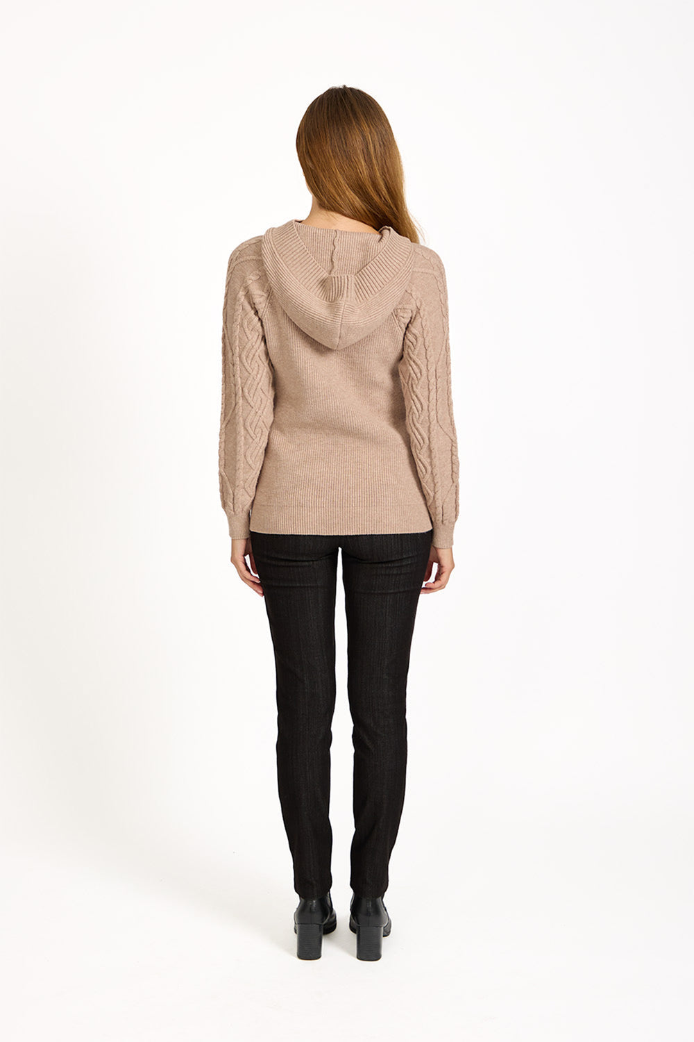 MUDFLOWER Camel Cable Knit Hooded Jumper