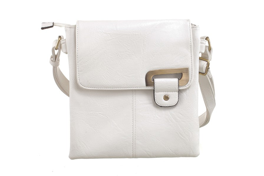Features: Small Crossbody | Button Clasp Flapover | Interior Pockets