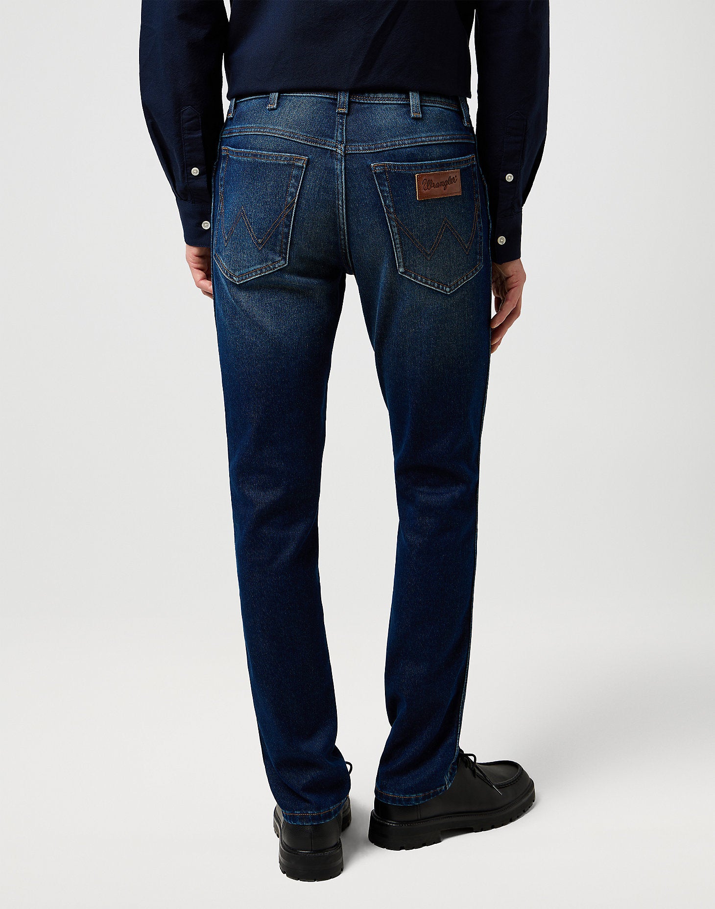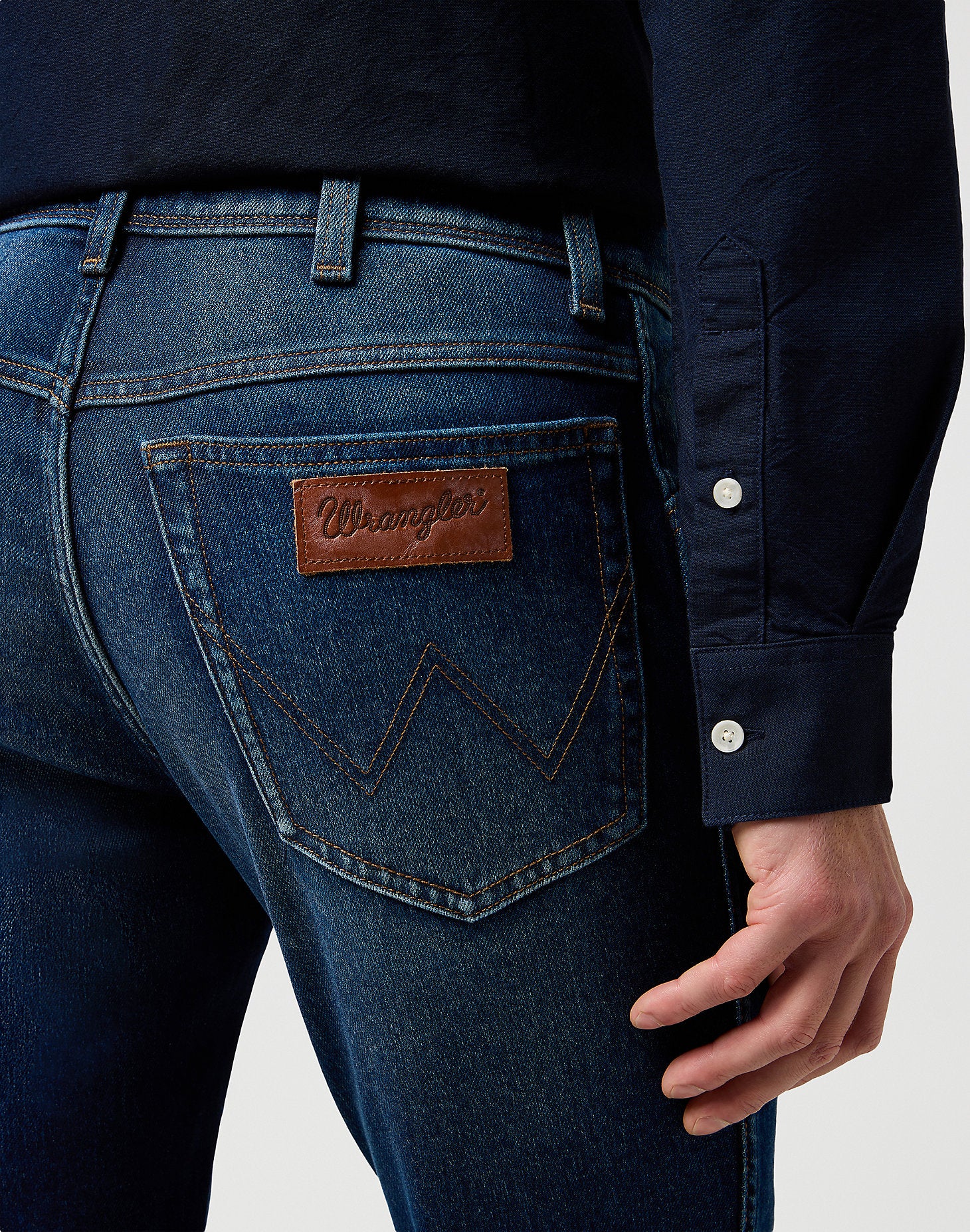 Slim leg with a regular thigh and a mid-rise that sits at the natural waist. Finished with 7 belt loops, 'W' stitching and a brown Wrangler leather patch on the back pocket. An authentic 5-pocket design finished with a small coin pocket and clean metal hardware.