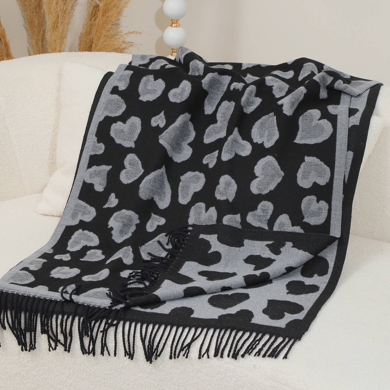 Chic Leopard Scarf Print Wool Scarf - Grey/Black